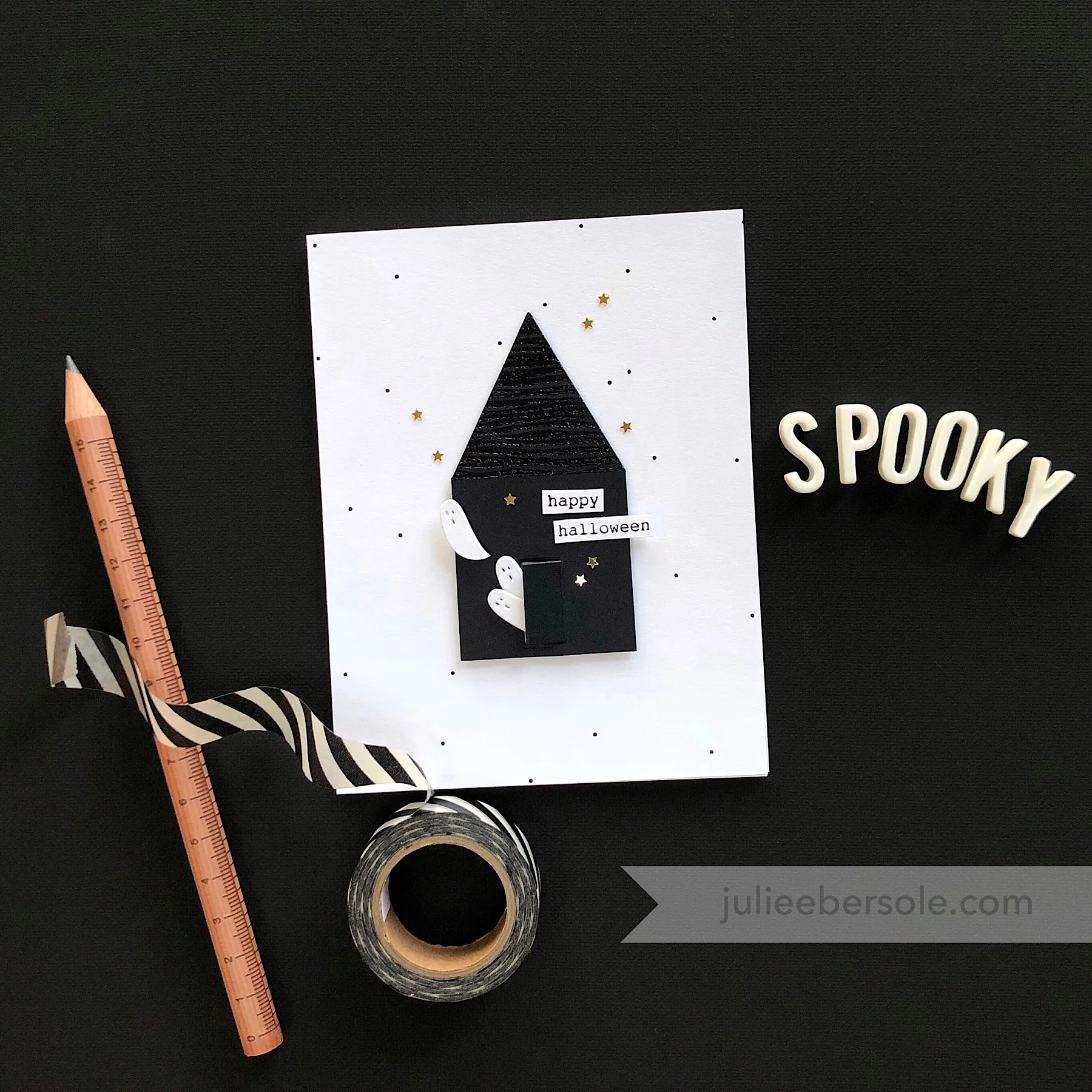 This sneak peek makes me downright giddy! I love Halloween--it's the Mister's birthday. I couldn't resist taking components from the House Box Die Set (coming this Sunday) and turning them into this fun card!